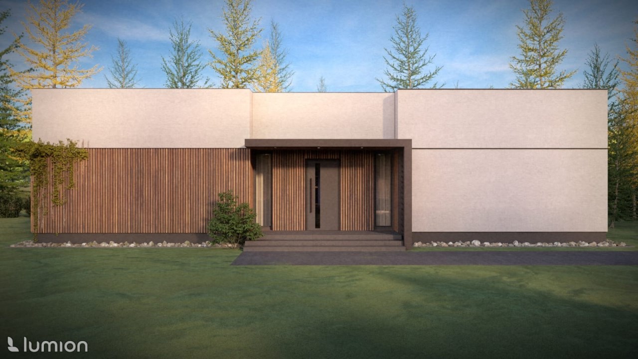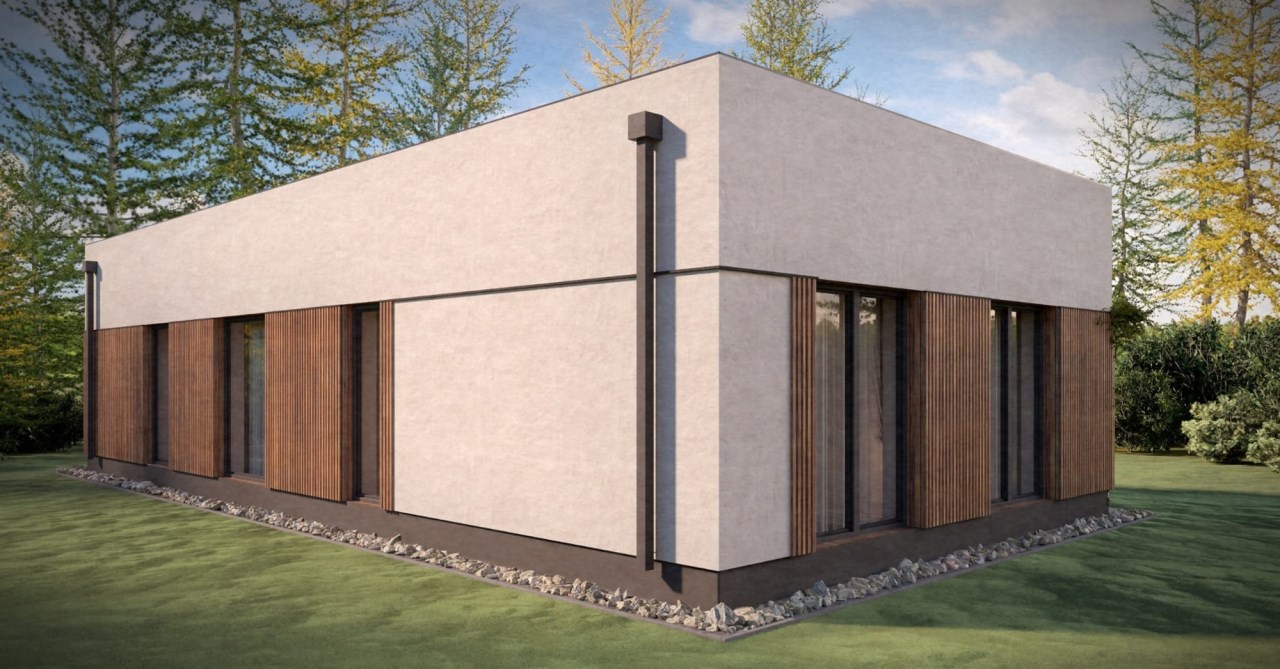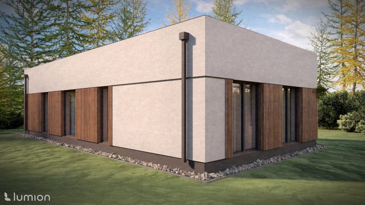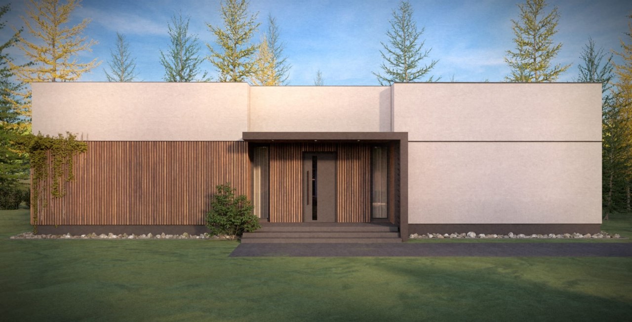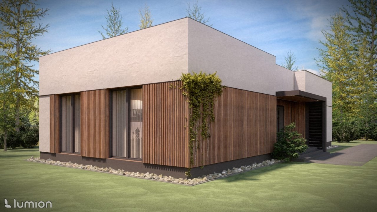 Budynek wyróżnia się minimalistyczną, nowoczesną bryłą z płaskim dachem oraz przemyślanym układem wnętrz.