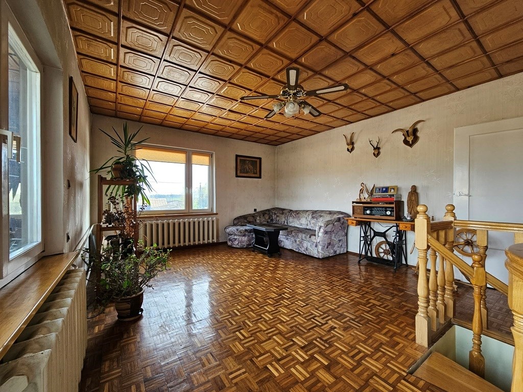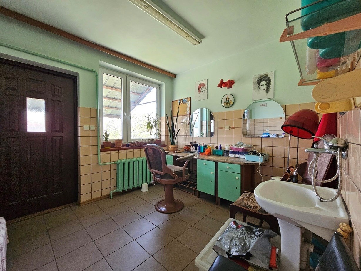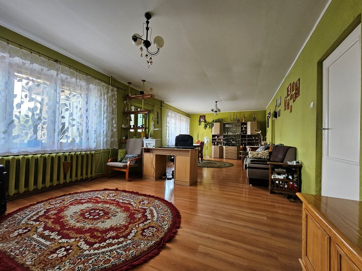 Nieruchomość o łącznej powierzchni ok. 260 m², wybudowana metodą tradycyjną i rozbudowana w 2000 r., ogrzewana kotłem na opał stały. W skład domu wchodzą: 6 sypialni, przestronny salon, kuchnia,2 łazienki, dodatkowe pomieszczenie z oddzielnym wejściem, które wcześniej pełniło funkcję salonu fryzjerskiego — idealne pod gabinet, biuro lub małą działalność Dom jest ogrzewany kotłem na opał stały, dach kryty blachą.