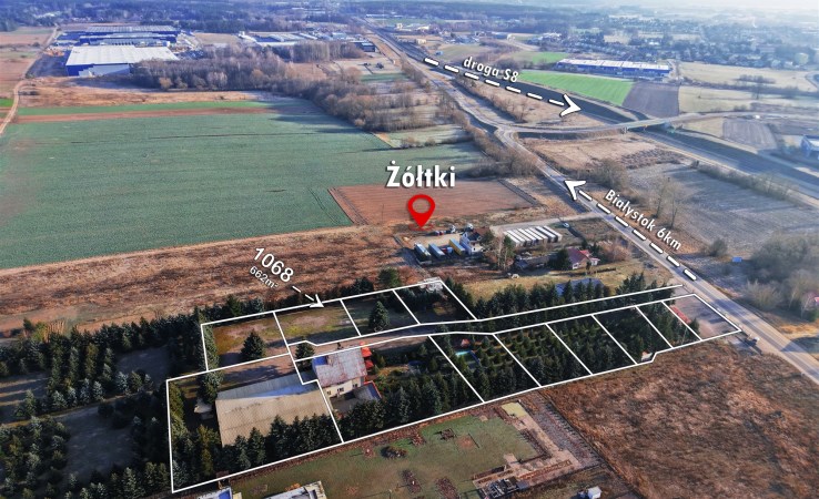 Na sprzedaż działka budowlano-usługowa w Żółtkach przy ul. Warszawskiej (gm. Choroszcz)