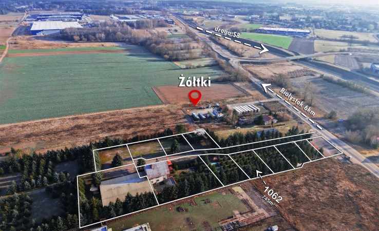 Na sprzedaż działka budowlano-usługowa w Żółtkach przy ul. Warszawskiej (gm. Choroszcz)