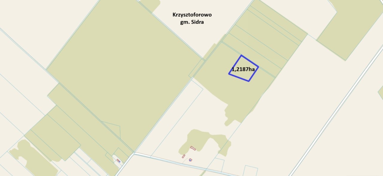 Działka leśna położona we wsi Krzysztoforowo gmina Sidra
