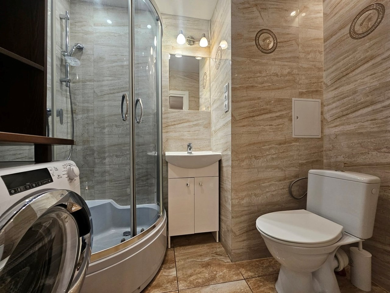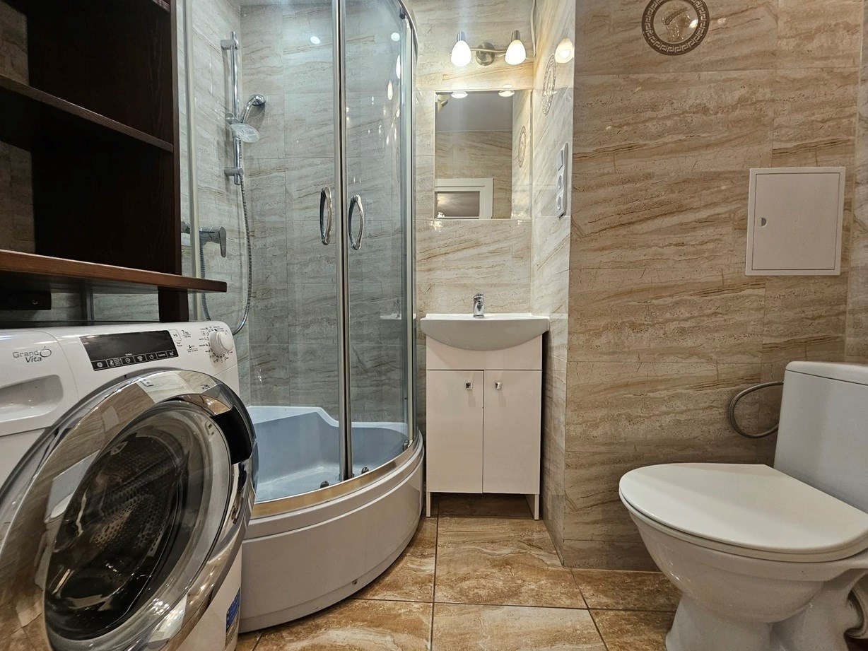 | Wyposażenie łazienki | kabina prysznicowa, lustro, pralka, umywalka, WC |