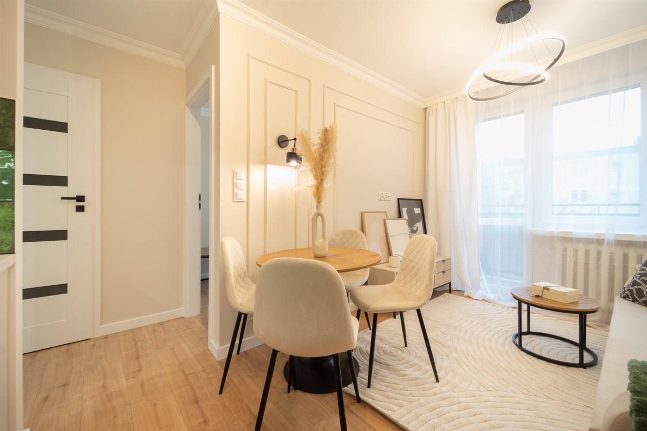 Lokal przeszedł generalny remont, całość wykończenia tworzy funkcjonalną, elegancką i klimatyczną przestrzeń do życia.