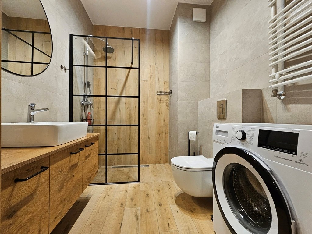 | Wyposażenie łazienki | kabina prysznicowa, lustro, pralka, umywalka, WC |
