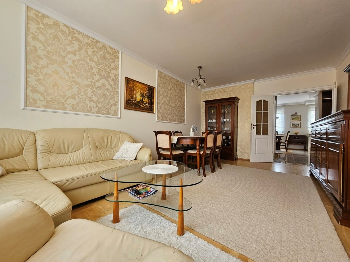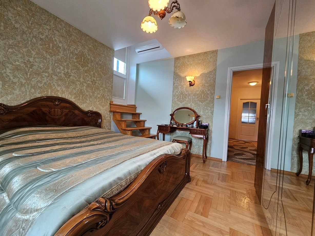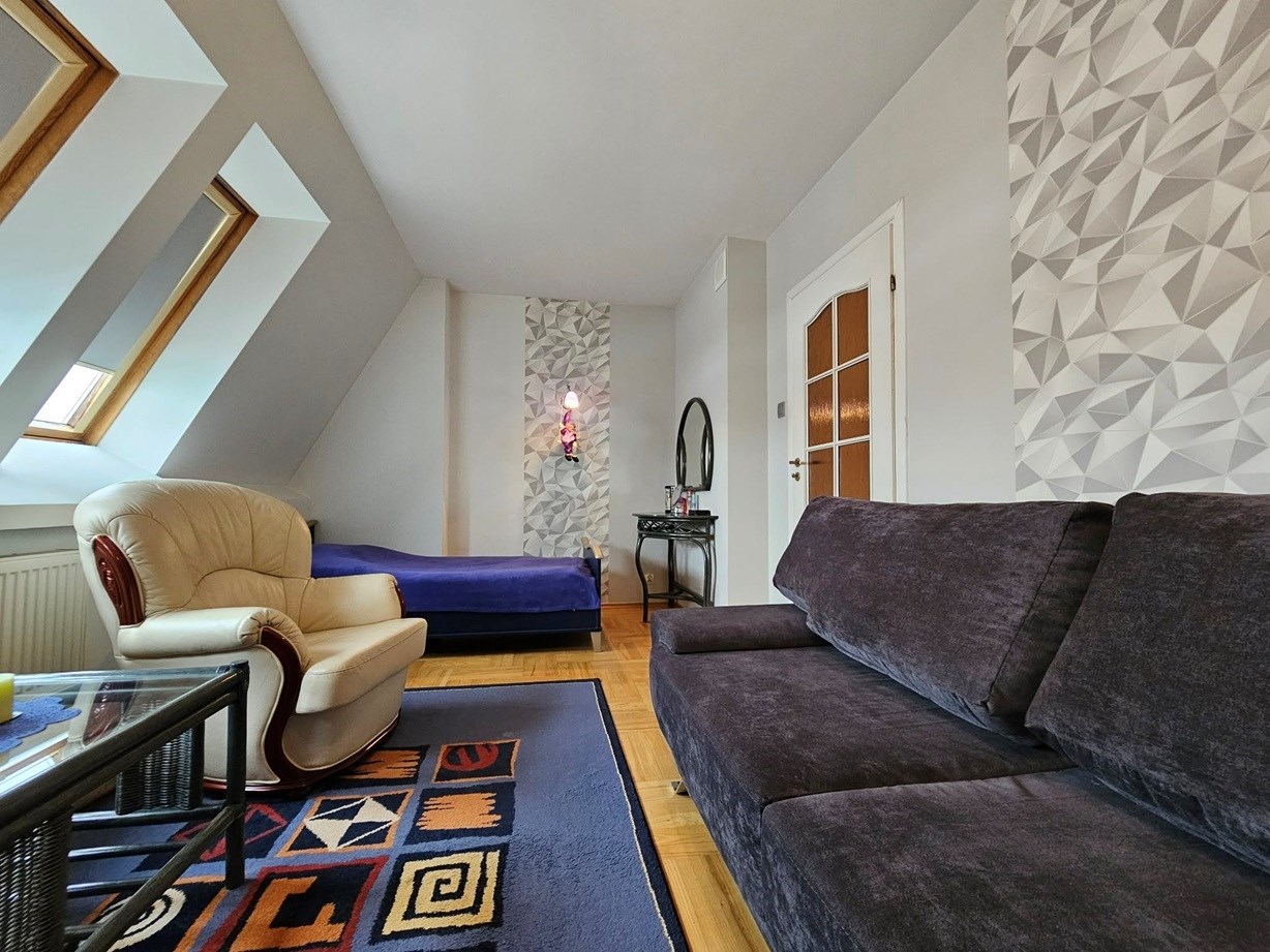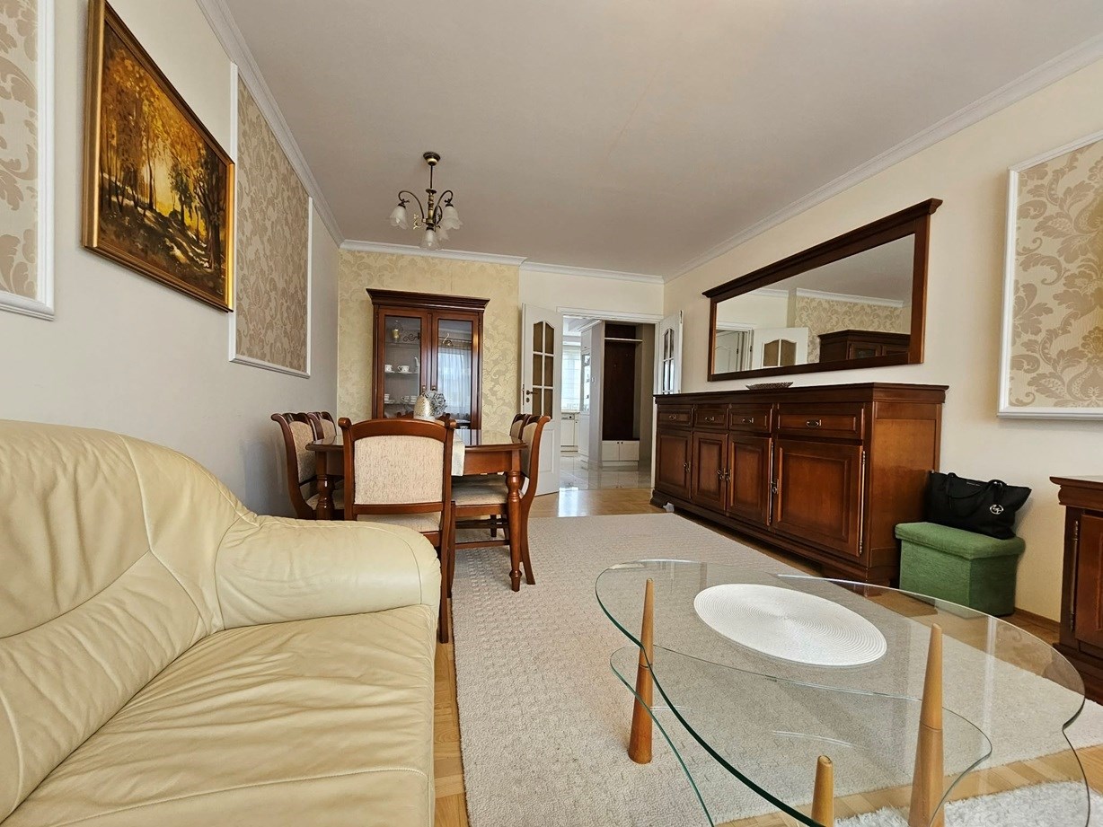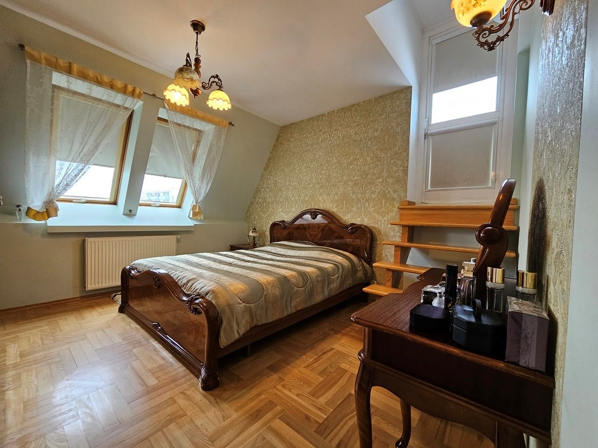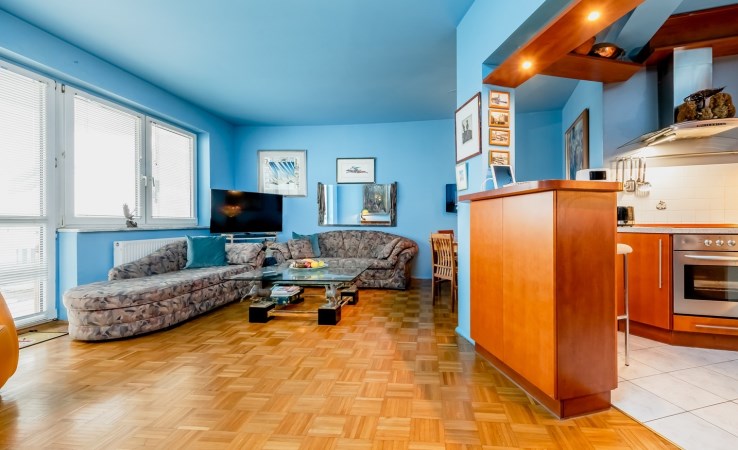 Mieszkanie ma powierzchnię 86,50 m2 i położone jest na III piętrze niskiego, bardzo zadbanego bloku z cegły z 2000r. Na pierwszej kondygnacji znajduje się duży, słoneczny salon, kuchnia połączona z jadalnią i korytarz. Na piętrze znajdziemy 2 ustawne sypialnie, w tym jedną klimatyzowaną, z wyjściem na taras o pow. 60m2, dużą łazienkę, garderobę i korytarz. Lokal 3 lata temu przeszedł gruntowny remont. Całość wykończenia tworzy niesamowicie ciepłą, funkcjonalną i elegancką przestrzeń do życia.