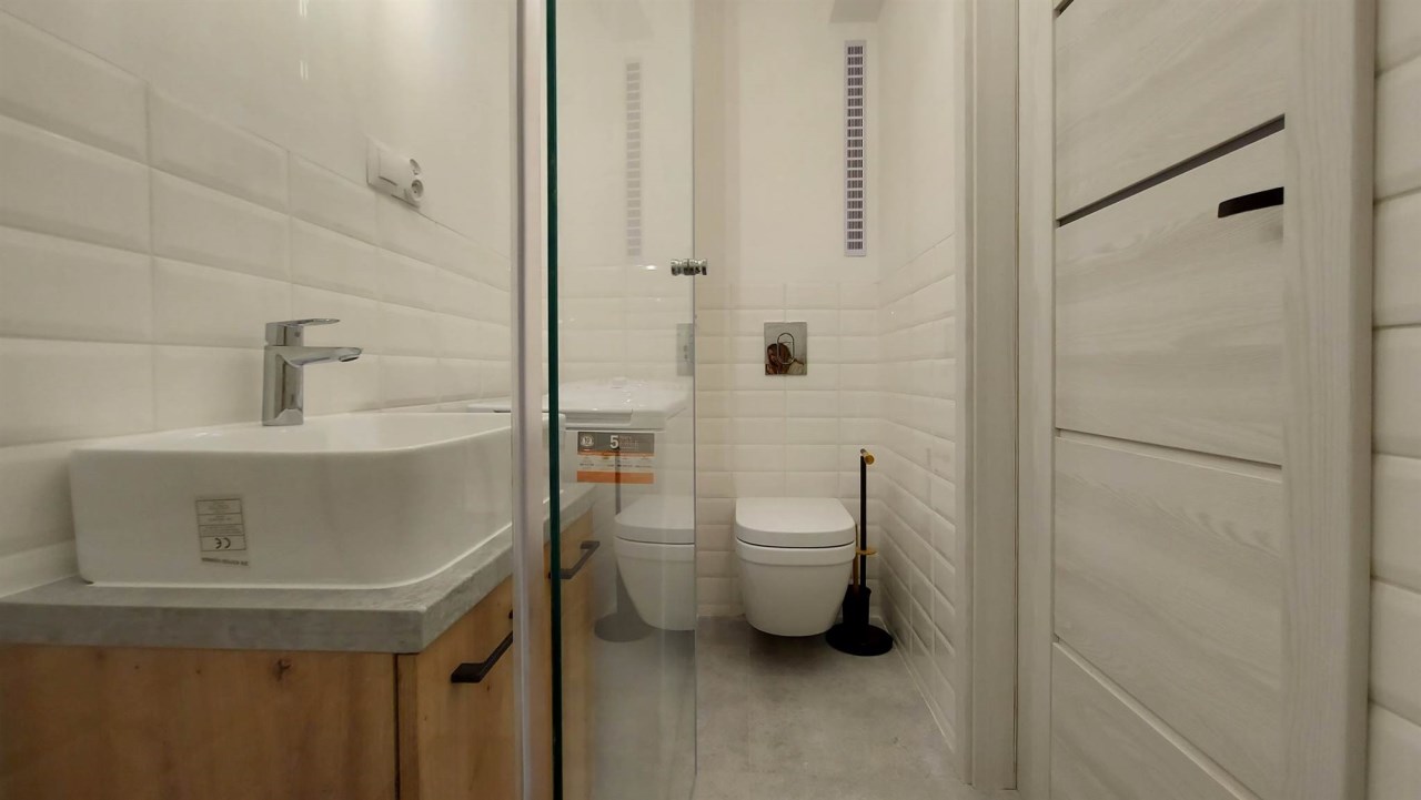 | Wyposażenie łazienki | lustro, prysznic, umywalka, WC |